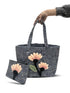 Sac cabas accompagné de sa pochette assortie.